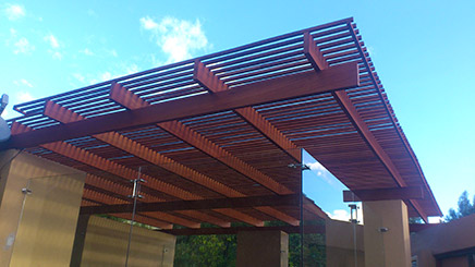 Una pérgola es un elemento arquitectónico y estructural hecho en maderas macizas de tipo estructural (abarco de rio, pino de cultivo, teka),pensadas y prediseñadas para ambientar los espacios y proteger de los cambios climáticos sin necesidad de aislar los ambientes. Acabado en Impranol que garantiza una excelente protección a la madera.