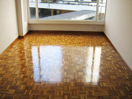 Duelas de madera maciza, perfectamente procesadas, con tiempos de secado en camaras de última generación que minimizan el riesgo de expansión y contracción propios de cualquier material. Moldurada y traslapada para permitir anclaje y encaje entre una y otra duela. Pulido, sellado y laqueado en sitio.